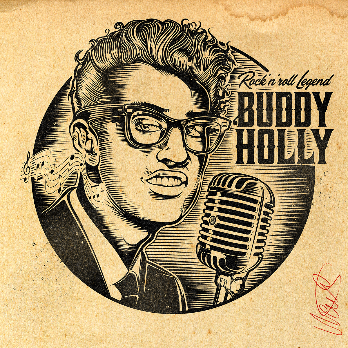 New commissioned design for honoring the Rock 'n' Roll Legend, Buddy Holly "Music never dies". We pay tribute to the rock 'n' roll icon, Mister Buddy Holly, through this stunning vintage retro illustration. His music still echoes in our hearts, even decades after his tragic departure. Don't hesitate to visit our online portfolio "Dribble" to discover other rock'n'roll illustrations. Thank you for your interest in my illustration work.