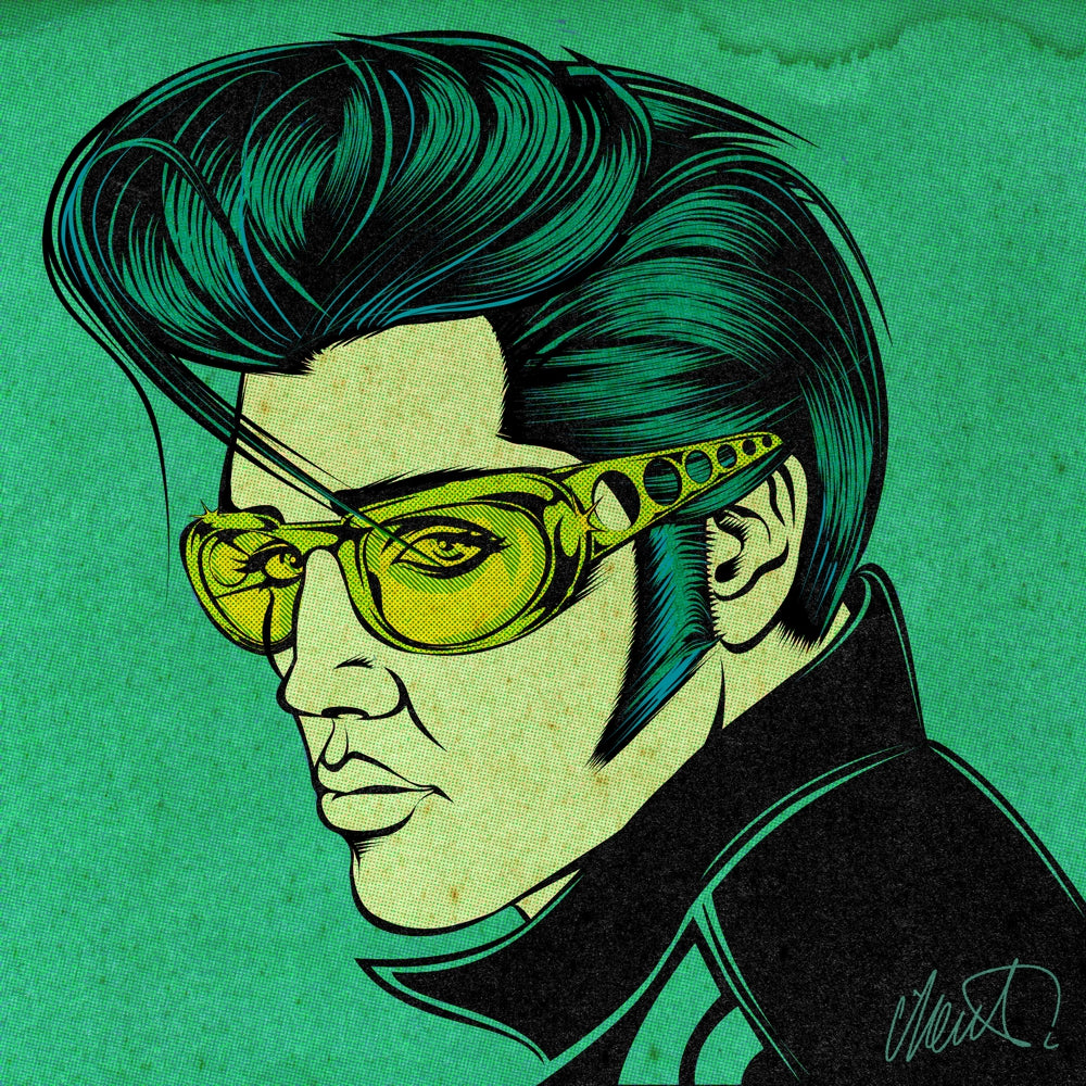 Discover my unique illustration of Elvis Presley, a captivating work created out of passion rather than commission. This authentic portrayal of the Rock 'n' Roll icon will soon be available in print at PRODIGI.