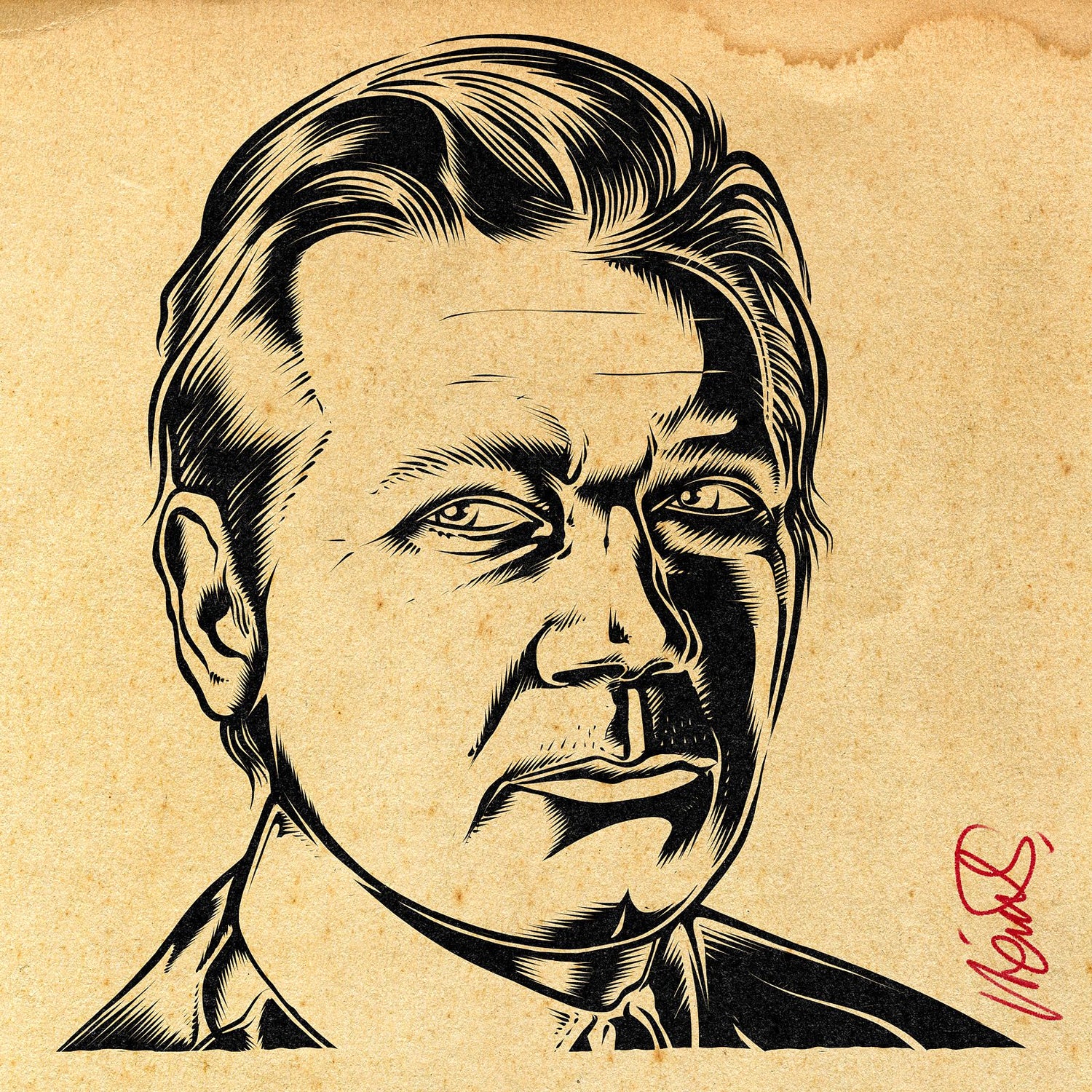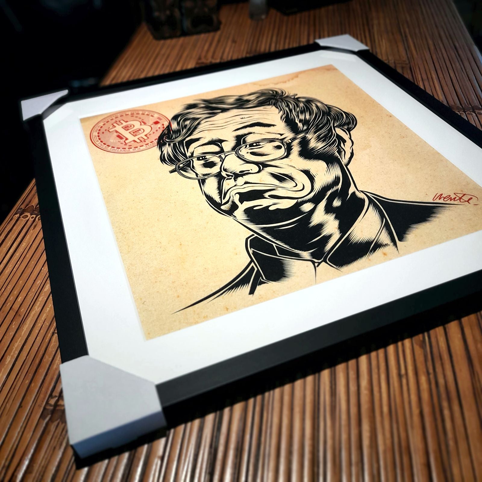 This black-and-white illustration captures the image of a man hunted down for exposing what the powerful wanted to keep hidden. Julian Assange revealed war crimes, state lies, and the manipulations shaping our world. His only "crime": telling the truth. Silenced, imprisoned, and isolated, he is living proof that the fight for freedom of information comes at a heavy cost. This chiaroscuro portrait highlights the price some must pay for the truth to come to light.